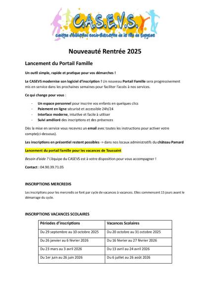 Le C.A.S.E.V.S. (Centre d’Animation Socio-Educative de la ville de Sorgues) accueille les enfants âgés de 3 à 17 ans toute l'année, les mercredis et pendant les vacances scolaires. L'équipe pédagogique d'animation propose des activités éducatives adaptées permettant aux enfants de découvrir tour à tour des activités manuelles, physiques, d'expression mais aussi de participer à des sorties diverses, des spectacles...